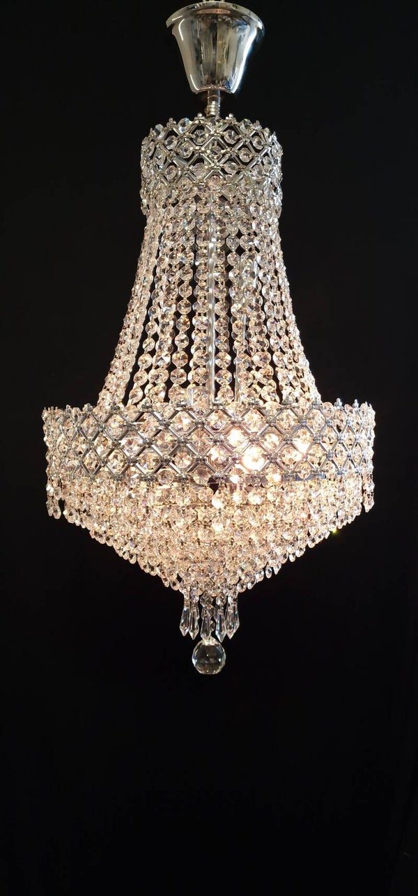 Kroonluchter zilverkleurig, gemaakt met de kristallen van het A-merk Asfour ( 32%pbo loodgehalte )